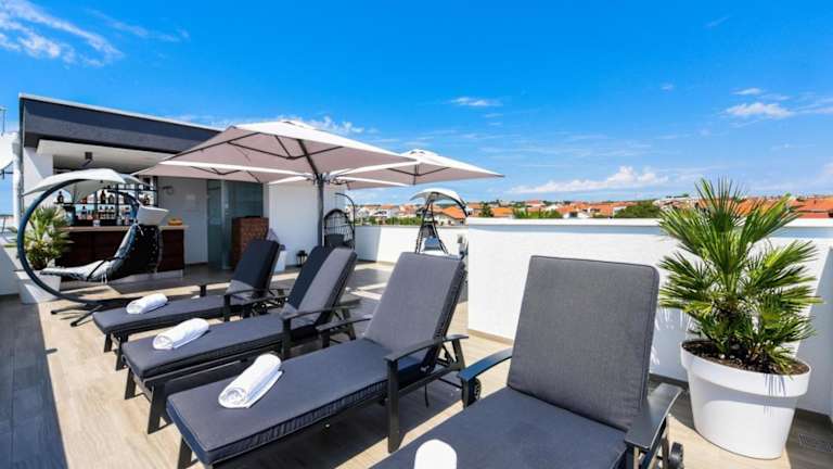 Die Unterkunft Rooftop heated pool Villa Jelena bietet ihren Gästen ein heimeliges Ambiente mit einem eigenen, beheizten Pool auf der Dachterrasse. Die Villa ist mit einer Klimaanlage ausgestattet und ermöglicht den Gäst:innen einen entspannenden Aufenthalt.