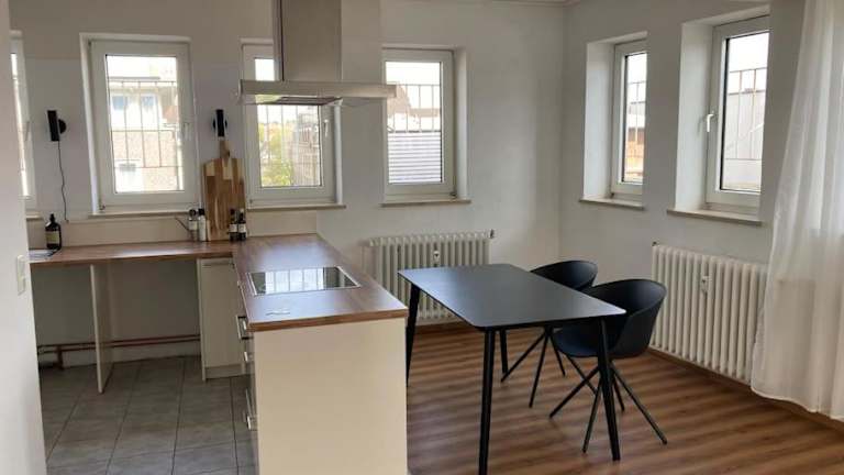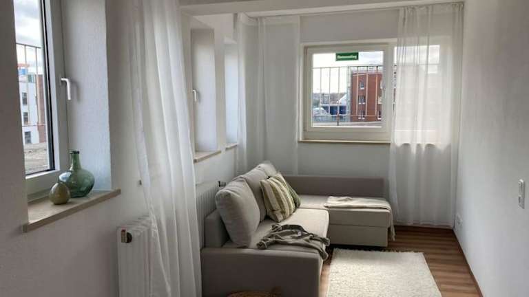 Die Ferienwohnung Rooftop mit Fördeblick bietet eine moderne und helle Unterkunft mit einem Balkon und einer Terrasse, ideal für einen Aufenthalt in Kiel.