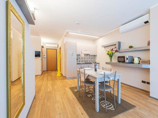 Die Ferienwohnung besteht aus 1 Schlafzimmer, einem Wohnzimmer sowie einer voll ausgestatteten Küche mit Kühlschrank und Kaffeemaschine. Das Badezimmer ist mit einem Bidet und einer Dusche ausgestattet. Handtücher und Bettwäsche werden bereitgestellt.