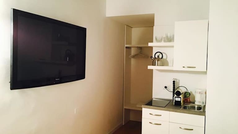 ROOM g3 ist eine moderne Ferienwohnung, die durch kostenloses Wifi und eine Klimaanlage überzeugt. Die Wohnung bietet eine angenehme Atmosphäre für die Gäste.
