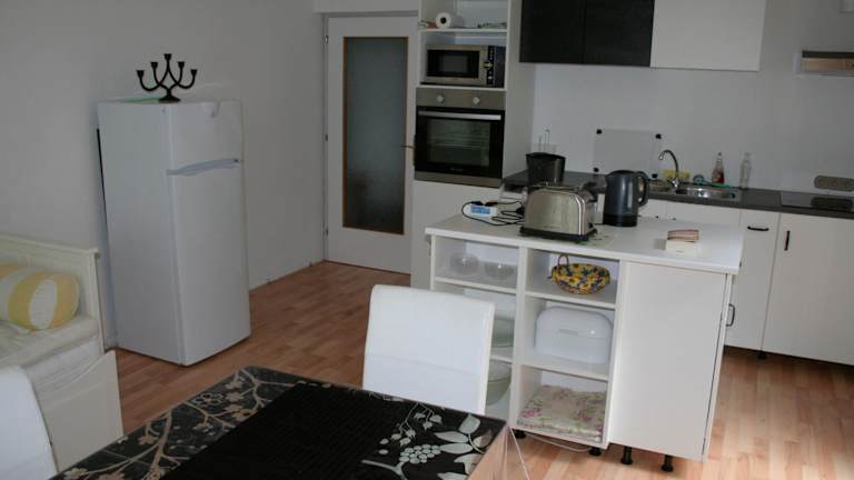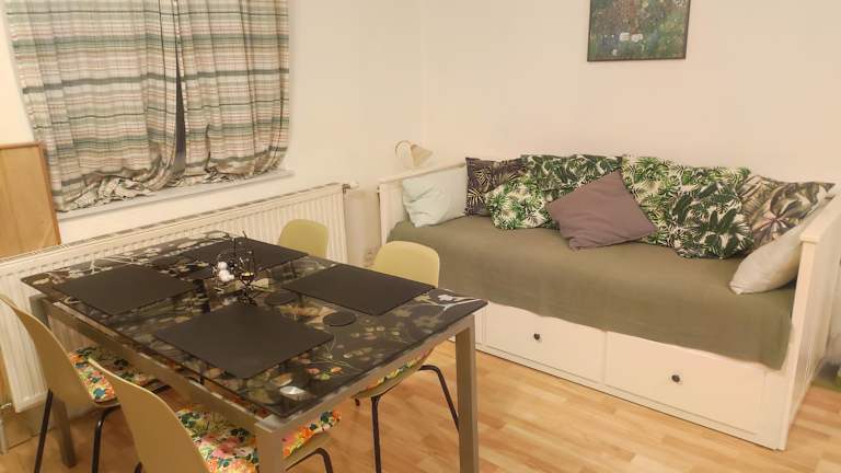 Die Ferienwohnung besteht aus einem Schlafzimmer und einem Badezimmer und ist mit Bettwäsche, Handtüchern, einem Flachbild-TV sowie einem Essbereich ausgestattet. Die voll ausgestattete Küche ermöglicht Selbstverpflegung und die Terrasse bietet einen schönen Gartenblick.