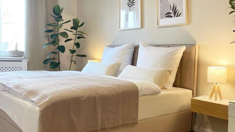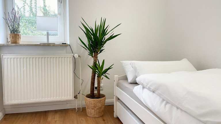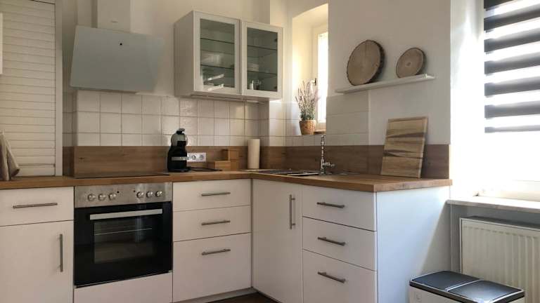 Die Ferienwohnung umfasst 2 Schlafzimmer, eine Küche mit Kühlschrank und Ofen sowie ein Badezimmer mit Badewanne und Haartrockner. Es werden Handtücher und Bettwäsche bereitgestellt.