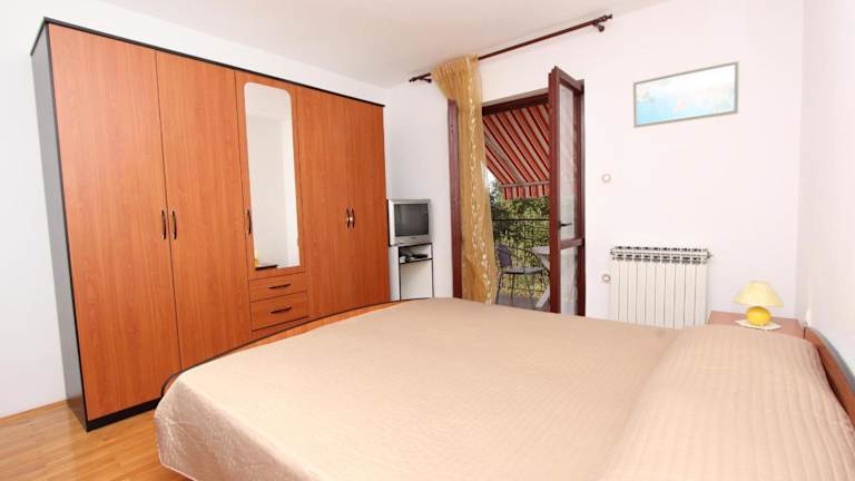 Die Zimmer in der Unterkunft Rooms and Apartment Sanja sind mit einem Kleiderschrank, Klimaanlage und teilweise mit einem Balkon eingerichtet. Bettwäsche und Handtücher sind vorhanden, und die Zimmer bieten einen schönen Blick auf den Garten.