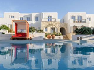 Das Hotel befindet sich in der Nähe des Strands Agii Anargiri, nur 450 m entfernt. Das Zentrum von Naoussa liegt 400 m entfernt. Die Entfernung zum internationalen Flughafen Paros beträgt 19 km, während der Hafen von Parikia 9 km entfernt ist. Der beliebte Strand Santa Maria ist in 2 km erreichbar.