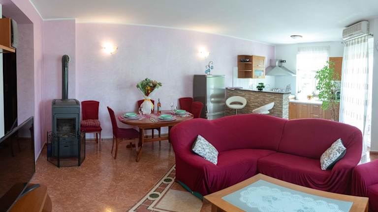 Apartment Kata bietet klimatisierte Übernachtungsmöglichkeiten mit Balkon. Die Unterkunft verfügt über zwei Schlafzimmer, eine gut ausgestattete Küche mit Kühlschrank und Ofen sowie ein Badezimmer mit Bidet, Haartrockner und Waschmaschine. Das Apartment ist für Familien geeignet und stellt die Bequemlichkeit eines Privatparkplatzes zur Verfügung.