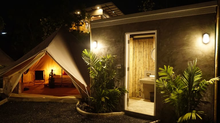 Das Roost Glamping - SHA Certified in Strand Rawai bietet luxuriöse Zelte, einen Außenpool, ein Restaurant und eine Bar. Hier können Sie sich entspannen und die Natur genießen. Das freundliche Personal steht Ihnen bei allen Fragen zur Verfügung und kann Ihnen bei der Organisation von Ausflügen helfen. Das Frühstück wird täglich serviert und es gibt verschiedene Aktivitäten wie Wandern und Radfahren in der Umgebung.