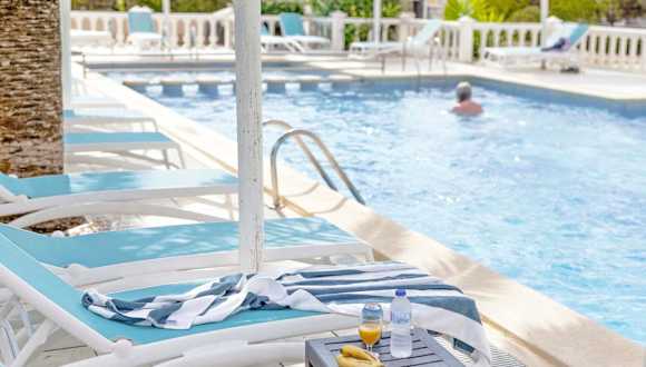 Das Hotel Roquetes Rooms - Formentera Break befindet sich in Es Pujols, einem beliebten Ort auf der schönen Insel Formentera. Die Umgebung bietet einen angenehmen Strandabschnitt mit Sonnenschirmen und Liegen für entspannende Stunden am Meer.