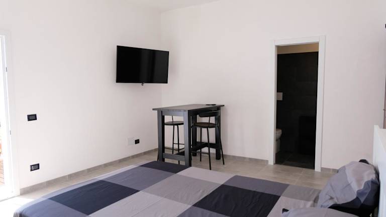 Die Ferienwohnung bietet ein Schlafzimmer mit Zugang zu einer Terrasse, eine voll ausgestattete Küche mit Kühlschrank, Kaffeemaschine und einem Sitzbereich. Zudem sind ein Flachbild-TV, eine Waschmaschine und ein Badezimmer mit Bidet, Dusche und Badewanne vorhanden. Die Unterkunft ist klimatisiert und verfügt über schallisolierte Zimmer.