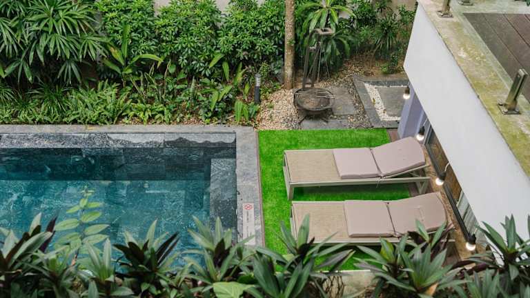 Das Rosee Villa - Green Villa with private Pool bietet eine idyllische Umgebung mit Bergblick. Gäste können sich auf einen heimeligen Aufenthalt in einer Unterkunft freuen, die sowohl einen privaten Pool als auch einen eigenen Strandbereich umfasst.
