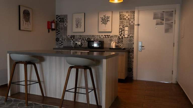 Jede Wohneinheit ist ausgestattet mit einem Balkon mit Bergblick, einem Satelliten Flachbild-TV, einem Essbereich sowie einer gut ausgestatteten Küche. Das eigene Badezimmer ist mit einem Bidet, kostenlosen Pflegeprodukten und einem Haartrockner versehen. Es gibt ein voll ausgestattetes Badezimmer mit Dusche und Hausschuhen.