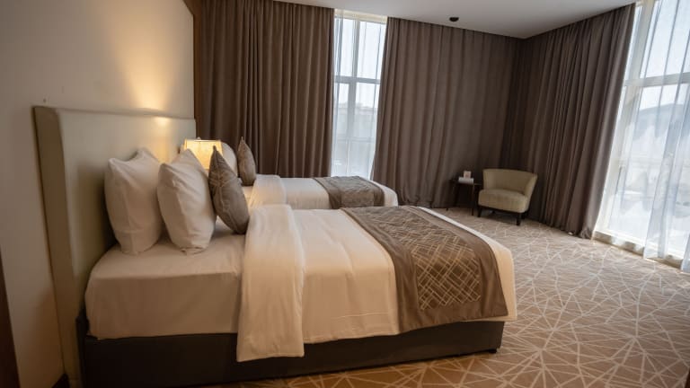 Die klimatisierten Zimmer sind mit Doppel- oder Kingsize-Betten ausgestattet und bieten eine Heizung, einen Schreibtisch, einen Flachbild-TV sowie ein eigenes Badezimmer mit Dusche. Bademäntel, Kosmetikartikel sowie Handtücher stehen zur Verfügung. Es sind auch Familien-, Nichtraucher- und Raucherzimmer verfügbar.