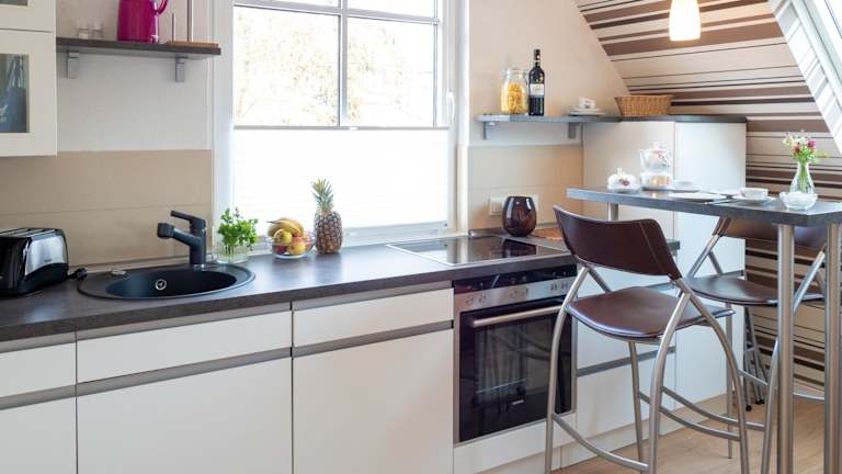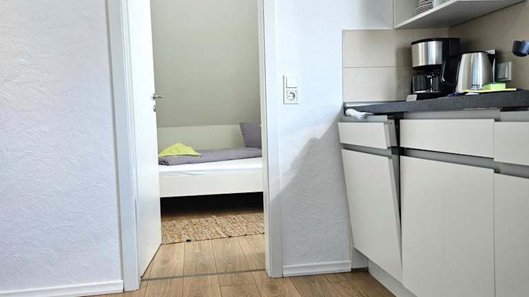 Die Ferienwohnung verfügt über ein Schlafzimmer, eine Küche, die mit einem Kühlschrank und einem Geschirrspüler ausgestattet ist, sowie ein Badezimmer mit Dusche, Haartrockner und Waschmaschine. Handtücher und Bettwäsche werden bereitgestellt.