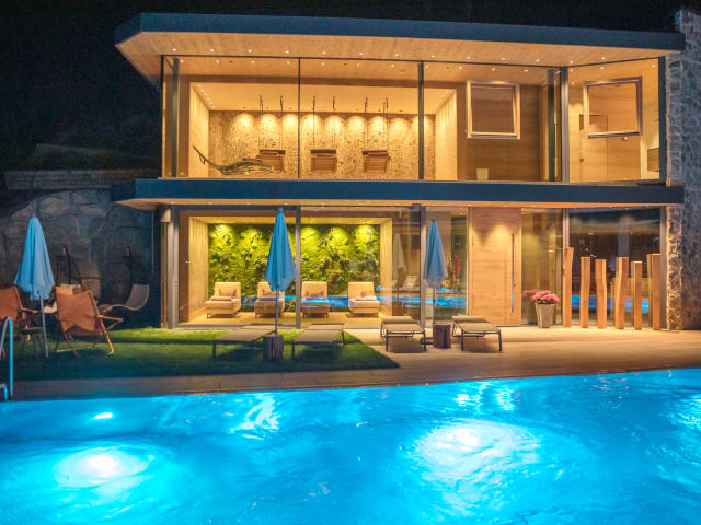 Ihr Frei.Raum erwartet Sie auch in unserem neuen Berg.Spa mit wohlig warmem Außenpool, ganzjährig auf mindestens 30 °C beheizt. Schwitzen können Sie bei uns auf drei Arten: klassisch in der finnischen Sauna mit Bergblick (nur für Erwachsene), sanft und angenehm im Sole-Dampfbad oder schonend in der Bio-Sauna. Danach finden Sie in unseren Ruheräumen die richtige Balance zwischen Schwerelosigkeit und Erde. Im Schwebe.Raum schaukeln Sie den Bergen entgegen, im Moos.Raum entspannen Sie auf Relaxliegen mit Blick ins Alpenpanorama, beide Bereiche sind nur für Erwachsene. Im Pool.Haus sind unsere kleinen Gäste ganz groß und Eltern schätzen die Gestaltung, weil sie alles gut im Blick behalten. Topservice für Biker Für unsere Biker gibt es einen absperrbaren und videoüberwachten Bikeraum, eine Bike-Waschanlage, einen Montageständer sowie einen Schuh und Kleidungstrockner. Außerdem ist die Joker Card im Aufenthalt inkludiert und bringt Ihnen kostenlosen bzw. ermäßigten Bergtransport, zum Beispiel zwei Freifahrten oder 30 Prozent Ermäßigung beim Tagesticket, ideal für Ihren Mountainbikeurlaub in Saalbach Hinterglemm. Topservice für Skifahrer Wir sind optimal ausgestattet mit Skiraum, Schuhtrockner und Trocknungsschränken. Für einen sorgenfreien Start in den Tag erhalten Sie Skipässe an der Rezeption, auf Wunsch auch mit Wachselservice über Nacht. Auf die Piste geht es schnell: 80 Meter zum Bergfriedlift oder 300 Meter zur Reiterkogelbahn.