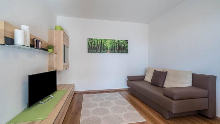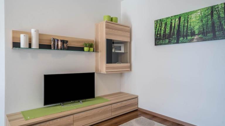 Die Ferienwohnung ist ausgestattet mit zwei Schlafzimmern, einem Badezimmer, Bettwäsche, Handtüchern, einem TV mit Satellitenkanälen sowie einer voll ausgestatteten Küche. Ein Balkon mit Gartenblick ergänzt die Einrichtung.