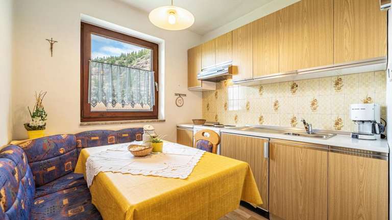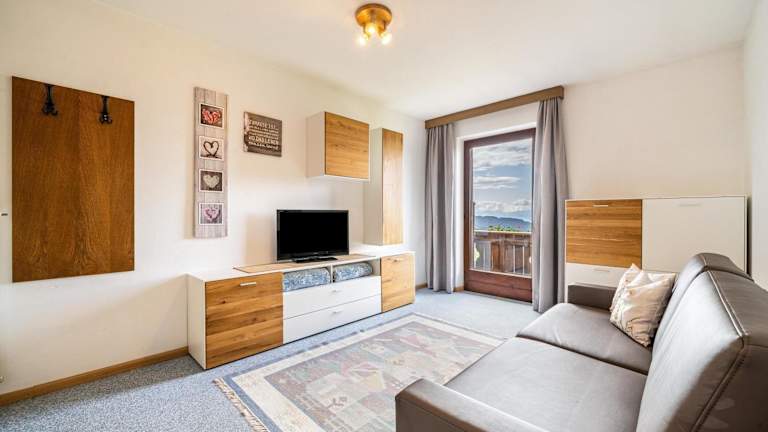 Die Ferienwohnung verfügt über ein Schlafzimmer, ein Wohnzimmer, einen TV sowie eine gut ausgestattete Küche mit Kühlschrank und Geschirrspüler. Ein Badezimmer mit Dusche und ein Balkon mit Bergblick sind ebenfalls vorhanden. Handtücher und Bettwäsche werden zur Verfügung gestellt.