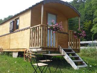 Die Unterkunft Roulottes Django et Bella bietet eine einzigartige Übernachtungsmöglichkeit in einem charmanten Ambiente mit einem Garten und einer Terrasse. Die Gäste können die gemütliche Atmosphäre eines Restaurants und einer Bar geniessen.