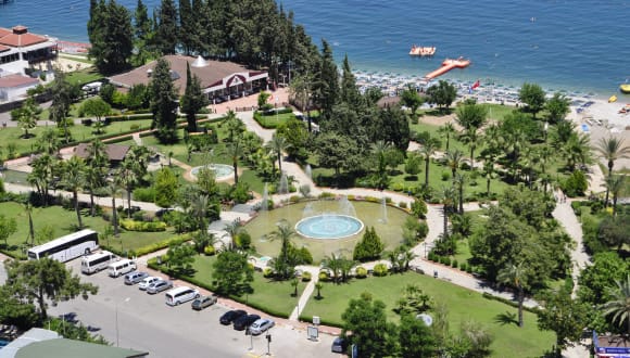 Das Rox Royal Hotel befindet sich in der Ferienregion Kemer, nur etwa 200 m vom Ortszentrum entfernt, das diverse Einkaufs- und Unterhaltungsmöglichkeiten bietet. Der hoteleigene, feinkieselige Strand ist bequem über eine Unterführung erreichbar. Eine Haltestelle für öffentliche Verkehrsmittel ist ebenfalls in wenigen Gehminuten erreichbar (ca. 200 m). Die Transferzeit zum Flughafen von Antalya beträgt ungefähr 60 Minuten. Die Entfernung zum Stadtzentrum beträgt ca. 1 km, während die Skipisten etwa 29 km entfernt sind.