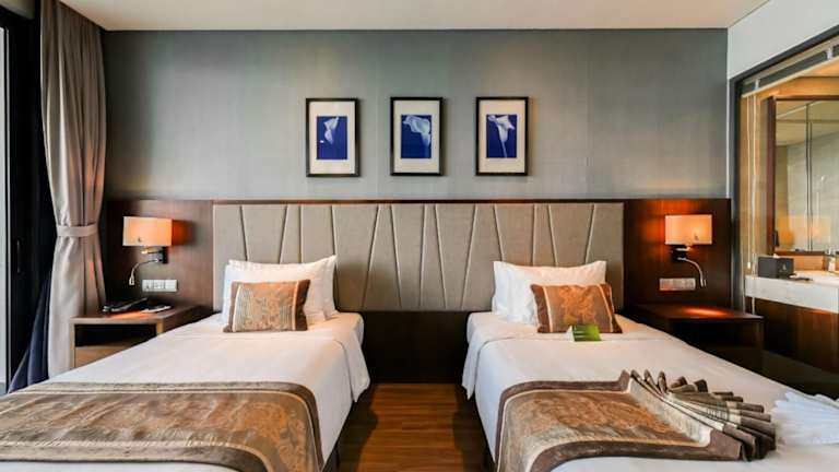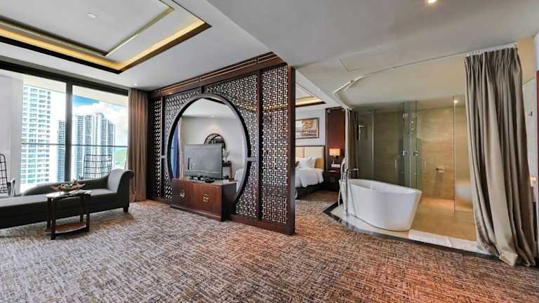 Die Zimmer sind mit Klimaanlage, Flachbild-TV und einem eigenen Balkon ausgestattet. Jedes Zimmer verfügt über ein Badezimmer mit kostenlosen Pflegeprodukten. Zudem gibt es eine Minibar, einen Safe sowie Tee-/Kaffeemaschine. Hausschuhe, ein Kühlschrank und eine Hosenpresse sind für zusätzlichen Komfort vorhanden. Kostenfreies WiFi steht in den Zimmern zur Verfügung und in den Badezimmern befinden sich Dusche, Haartrockner sowie Bademäntel.