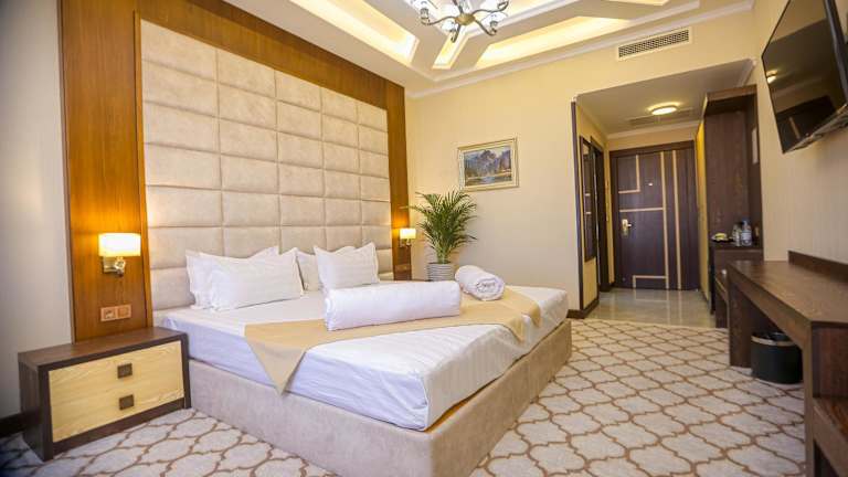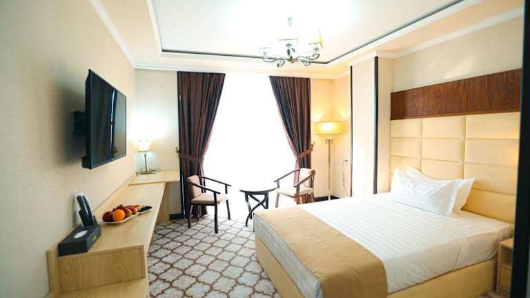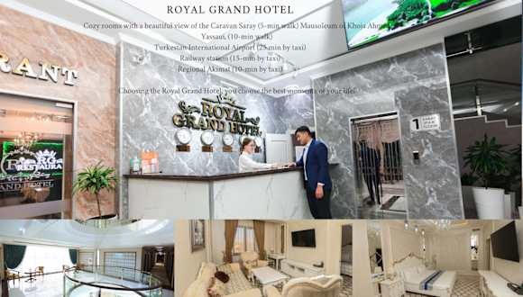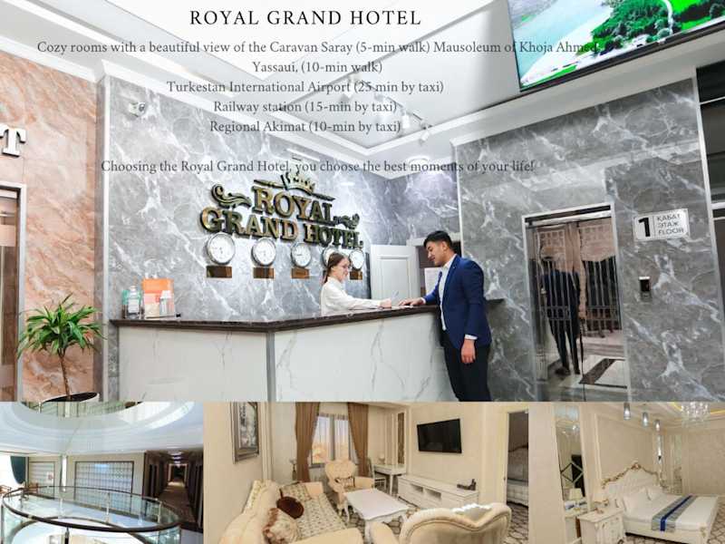 Das Royal Grand Hotel in Türkistan bietet Übernachtungsmöglichkeiten in einer einladenden Atmosphäre und verfügt über eine Bar. Zu den Einrichtungen gehören ein Restaurant, Zimmerservice und eine rund um die Uhr besetzte Rezeption, die stets für die Wünsche der Gäste da ist.
