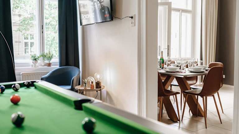 Royal Heritage Apartments - City Centre bietet eine moderne Ferienwohnung mit schönem Gartenblick. Die gut ausgestattete Ferienwohnung verfügt über einen Balkon mit Stadtblick, was zu einem angenehmen Aufenthalt beiträgt. Die Ausstattung umfasst auch einen Billardtisch und kostenloses Wifi.