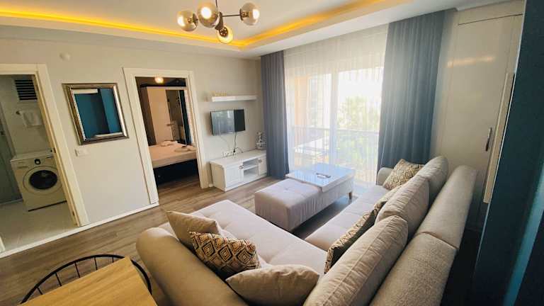 Diese Apartmentanlage liegt in Antalya, direkt am Strand. Geschäfte sind ebenfalls vorhanden, und die Umgebung lädt zur Erkundung ein.