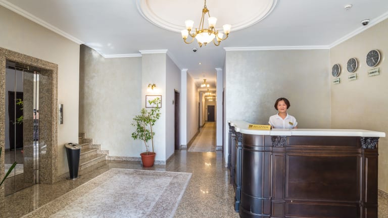 Das Hotel befindet sich in Almaty, etwa 6 km vom Flughafen entfernt, 12 km vom Stadtzentrum und 500 m vom Bahnhof Almaty 1.