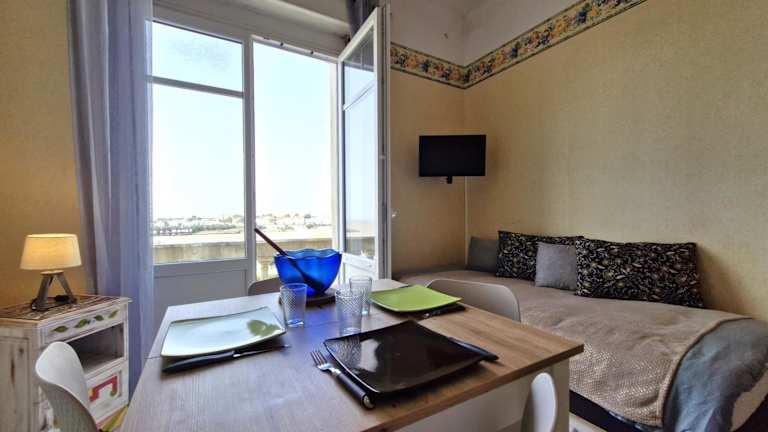 Royan PONTAILLAC - STUDIO PLEINE VUE MER - Ideal PETIT BUDGET bietet eine Ferienwohnung mit herrlichem Meerblick, ideal für Gäste mit kleinerem Budget. Die Unterkunft verfügt über einen Balkon und kostenfreie Parkiermöglichkeiten.