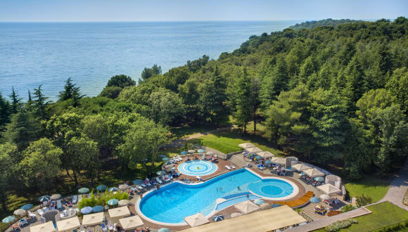Sport: Sportliche Aktivitäten sind für Urlauber im Valamar Rubin Hotel und in der Umgebung von Porec möglich. Erfrischen Sie zum Beispiel bei morgendlicher Gymnastik Körper und Seele, schwingen Sie sich aufs Fahrrad und erkunden Sie auf den zahlreichen Radwegen die malerische Landschaft. Besuchen Sie das nahe gelegene Sportzentrum mit seinen 16 Tennisplätzen oder verausgaben Sie sich in Ihrer Freizeit im Fitness- und Aerobicstudio des benachbarten Valamar Diamant Hotels. Gehen Sie im azurblauen Wasser der Adria tauchen oder versuchen Sie sich in einer der vielen Wassersportarten. Strand und Swimmingpool: Vom Valamar Rubin Hotel aus erreichen Gäste schon nach einem kurzen Spaziergang durch den Pinienwald den Strand, der wegen seiner Sauberkeit mit einer Blauen Flagge ausgezeichnet wurde. Dort erwartet Sonnenurlauber ein Plätzchen zum Entspannen mit herrlichem Blick auf die Küste Istriens. Während sich die Großen auf dem Volleyballplatz oder im kristallklaren Meerwasser vergnügen, werden die Kleinen im Spielbereich überschüssige Energie los. Auch im Süßwasser des hoteleigenen Swimmingpools oder im Pool mit Gegenstromanlage des benachbarten Valamar Diamant Hotels kommen Badeurlauber auf ihre Kosten. Wellness: Im nahen Wellnesscenter können die Gäste des Valamar Rubin Hotels ihren Alltagsstress hinter sich lassen. Die Wellnessangebote mit geschultem und freundlichem Personal verwöhnen Körper und Seele und steigern das Wohlbefinden. Entspannen Sie in der finnischen Sauna oder im Hamam, erleben Sie die wohltuende Wirkung einer fachkundigen Massage und ruhen Sie sich anschließend im tropisch oder mediterran gestalteten Ruheraum aus. Gönnen Sie sich zum Schluss noch eine Kosmetikbehandlung bei den erfahrenen Friseuren, Maniküristen und Pediküristen des Hauses. Unterhaltung: Mit Unterhaltung und Fitness für jedes Alter sorgt das Animationsteam des Valamar Rubin Hotels bei den Gästen für gute Laune, etwa mit Beachvolleyballspielen oder Fahrradtouren. Kinder lernen im Maro Club und auf dem Abenteuerspielplatz neue Freunde kennen. Am Abend steht das Kindertheater im Rampenlicht, dann amüsiert sich die ganze Familie bei einem bunten Programm mit erstklassiger Unterhaltung. Ebenfalls inklusive: Live-Musik.