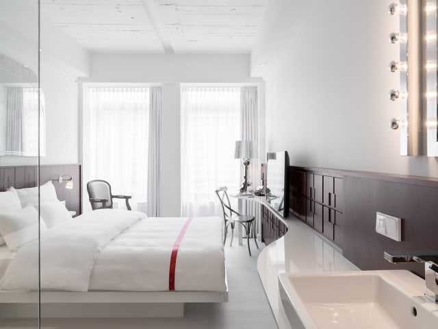 Die 92 hochwertig ausgestatteten Zimmer spiegeln die Lean Luxury Philosophie des Hotels wieder: Luxus auf kleiner Fläche, mit Kirschbaum-Wandvertäfelung, Echtholz-Dielenboden, edlen Textilien und stimmungsvollem Lichtkonzept. Luxuriöse Betten mit überlangen Taschenfederkern-Matratzen und eigens für Ruby angefertigte, übergroße Luxus-Bettwäsche bieten erholsamen Schlaf. Für ein erfrischendes Duscherlebnis sorgt die gläserne Regendusche mit eigens kreierten aromatherapeutischen Ruby Care Amenities und flauschigen extragroßen Frottee-Handtüchern. Alle Zimmer sind ausgestattet mit einer Marshall Lautsprecher-Box, einem 40‘‘ HD TV und einem Tablet PC, der als Online Concierge dient. Der handkuratierte City Guide hält persönliche Tipps zu angesagten Bars, Cafés und Shopping Hot Spots bereit. Für Gäste gibt es an der Bar E-Gitarren zum Ausleihen. Das Hotel überzeugt mit weiteren Extras wie Ruby Bikes zur Stadterkundung, dem hoteleigenen Radiosender Ruby Radio sowie der Galley mit kostenfreien Heißgetränken und einer Maxi-Bar auf jedem Stockwerk.