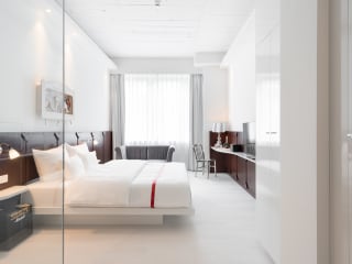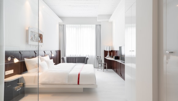 Mitten im Herzen der Stadt und nur einen Katzensprung von der Königsallee entfernt, bringt Ruby Leni das Flair des ehemaligen Düsseldorfer Schauspielhauses zurück auf die Bühne – kombiniert mit modernem Design und urbanem Komfort. Die Zimmer sind im typischen Lean Luxury-Stil gestaltet und punkten mit kleinen Highlights wie extra großen Betten, Regenduschen und unseren Ruby Care Produkten. In der hauseigenen Bar – liebevoll ausgestattet mit antiken Requisiten und Vintage-Kostümen – gibt’s rund um die Uhr Signature-Drinks, gute Musik und echtes Theaterflair. An sonnigen Tagen ist die Terrasse im Erdgeschoss der perfekte Spot zum Entspannen. Morgens startet der Tag mit einer Auswahl an regionalen Leckereien vom Buffet und frisch gebrühtem Barista-Kaffee – perfekt, um gestärkt in die Stadt zu starten. Die Altstadt und das Rheinufer sind ganz entspannt zu Fuß erreichbar, und wer weiter hinaus möchte, hat die U-Bahn-Station Graf-Adolf-Platz direkt vor der Tür. Der Hauptbahnhof? Nur zwei Stationen entfernt.