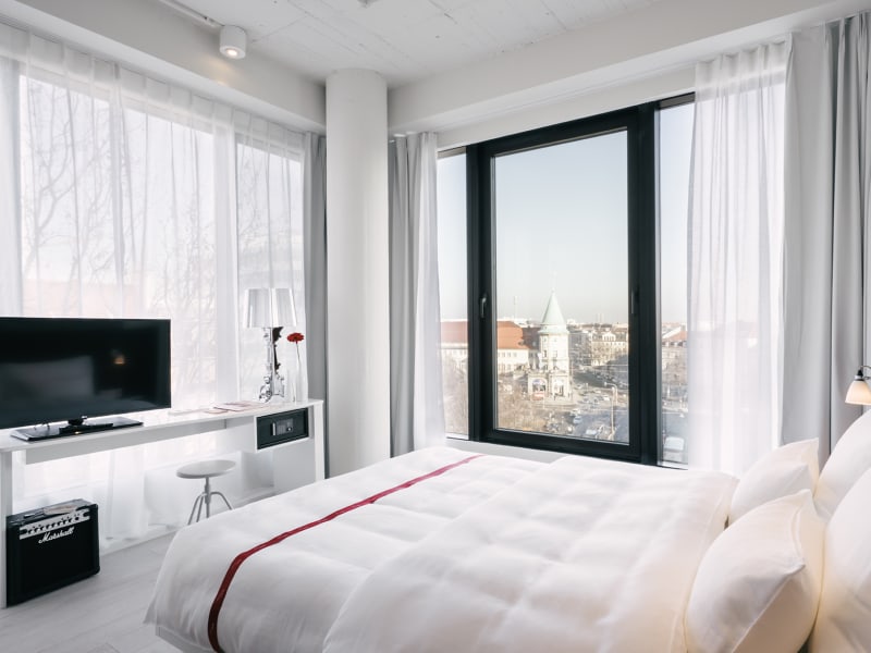 Mit ihrem einzigartigen Design ist Ruby Lilly eine stilvolle Unterkunft mitten in München. Die hochwertig ausgestatteten Zimmer kombinieren warme Kirschholz-Elemente mit echtem Eichen-Dielenboden. Dimmbares Licht schafft genau die richtige Stimmung – ob zum Abschalten nach einem langen Tag oder für einen entspannten Start in den Morgen. Große Fenster bringen viel Tageslicht ins Zimmer und bieten – mit oder ohne Sitznische – einen hellen Lieblingsplatz zum Lesen, Träumen oder einfach mal Nichtstun. Luxuriöse Betten mit Taschenfederkernmatratzen und hochwertiger Bettwäsche sorgen für erholsamen Schlaf, während eine gläserne Regendusche mit eigenen Ruby Care Produkten den perfekten Frischekick am Morgen liefert. Dank der zentralen Lage sind die angesagtesten Bars, Cafés und Shops Münchens bequem zu Fuß erreichbar. Weitere Highlights im Hotel: unsere Ruby-typischen E-Gitarren zum Ausleihen inklusive Marshall Amp im Zimmer, der hoteleigene Radiosender, eine gemütliche Library zum Arbeiten und Stöbern – und die Dachterrasse über den Dächern der Stadt.