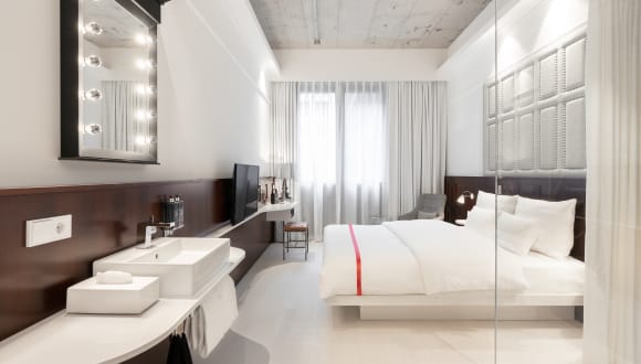 Im Herzen Frankfurts, zwischen dem Bankenviertel und der Altstadt, begrüßt Ruby Louise ihre Gäste mit einer einzigartigen Mischung aus klassischer Eleganz und urbanem Flair. Inspiriert von Louise von Rothschild, einer Pionierin des 19. Jahrhunderts, vereint das Design des Hotels Biedermeier-Elemente mit modernen Street-Art-Akzenten. Die Zimmer bieten einen Rückzugsort der Ruhe und des Komforts. Jedes Zimmer ist mit einer luxuriösen Taschenfederkernmatratze, extragroßen Betten, schallisolierten Fenstern und Regenduschen ausgestattet. Ruby Care Produkte sorgen für zusätzliche Entspannung. Die rund um die Uhr geöffnete Bar serviert erstklassige Cocktails und Snacks. An warmen Tagen lädt die Dachterrasse dazu ein, den Blick über die Stadt zu genießen. Nur wenige Schritte vom Hauptbahnhof entfernt, ist Ruby Louise der ideale Ausgangspunkt, um Frankfurt zu erkunden. Die Altstadt sowie die Zeil sind bequem zu erreichen. Ein urbaner Rückzugsort für Entdecker und Genießer – stilvoll, zentral und mit historischem Flair.