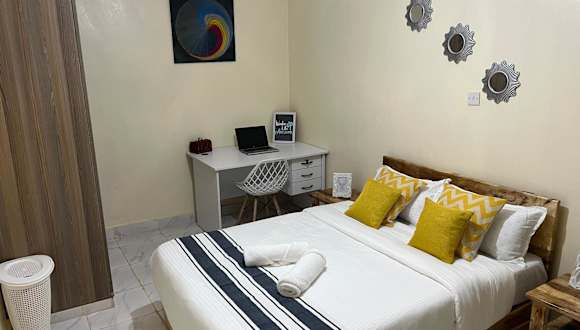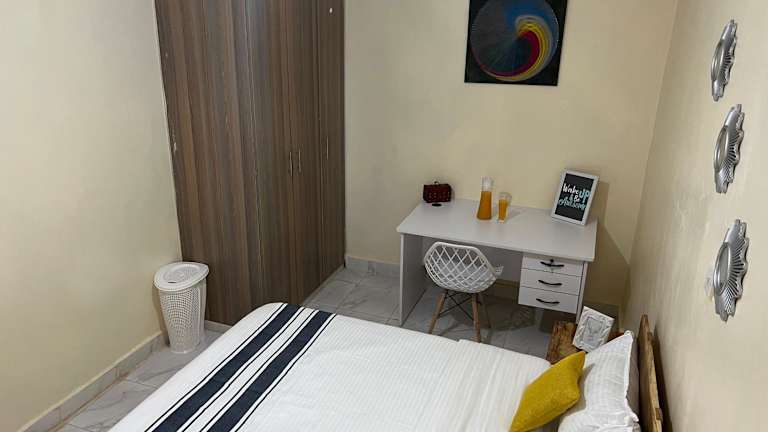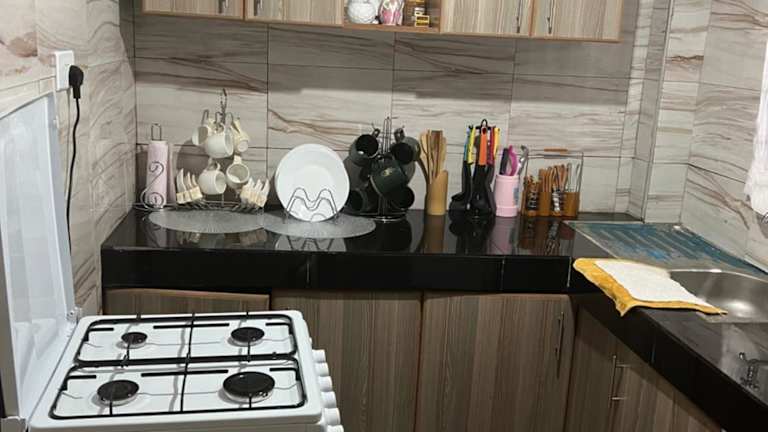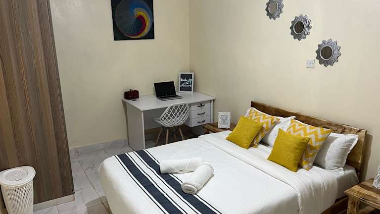 Das Apartment im Ruby Modern Homes-2br-Nyeri, King'ong'o-Knights verfügt über 2 gemütliche Schlafzimmer, in denen Sie sich nach einem ereignisreichen Tag entspannen können. Die Küche ist gut ausgestattet mit einem Kühlschrank und einem Backofen, so dass Sie Ihre eigenen Mahlzeiten zubereiten können. Das Wohnzimmer bietet einen komfortablen Sitzbereich und einen Flachbild-TV für Ihre Unterhaltung. Im Badezimmer finden Sie eine Dusche und Handtücher sowie Bettwäsche werden gestellt.