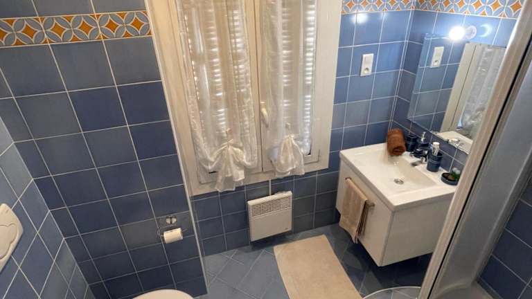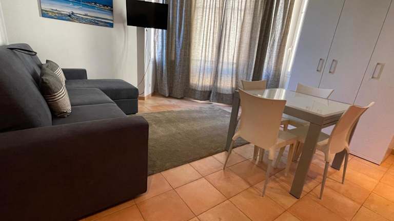 Die Ferienwohnung umfasst ein Schlafzimmer und ein Wohnzimmer, welches mit Klimaanlage ausgestattet ist. Die voll ausgestattete Küche verfügt über einen Kühlschrank und einen Wasserkocher. Das Badezimmer bietet ein Bidet und eine Dusche. Handtücher und Bettwäsche werden zur Verfügung gestellt.