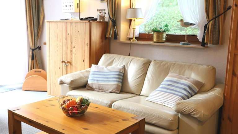 Die Ferienwohnung verfügt über ein Schlafzimmer sowie ein Wohnzimmer mit Kabel-TV. Die voll ausgestattete Küche ist mit einer Mikrowelle ausgestattet, was praktisch für die Selbstverpflegung ist.
