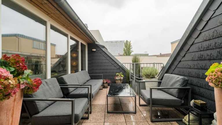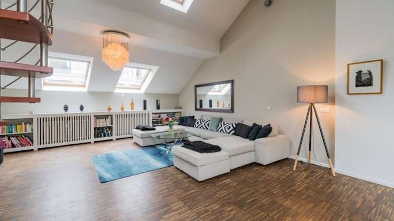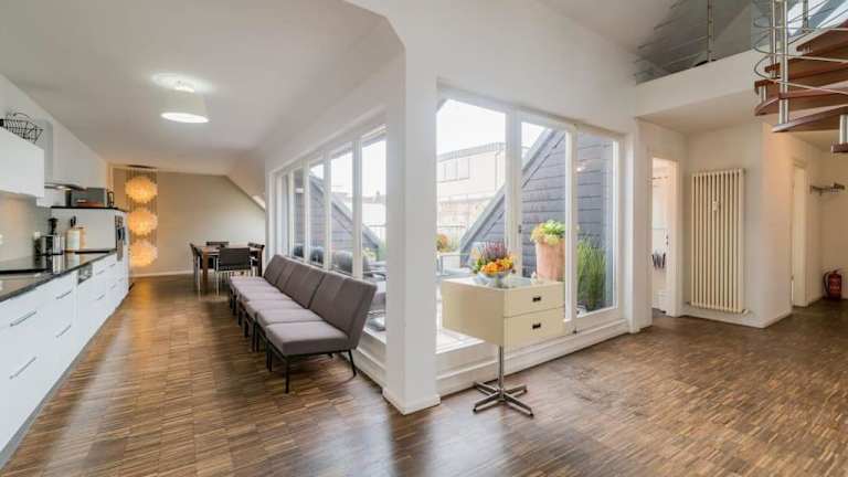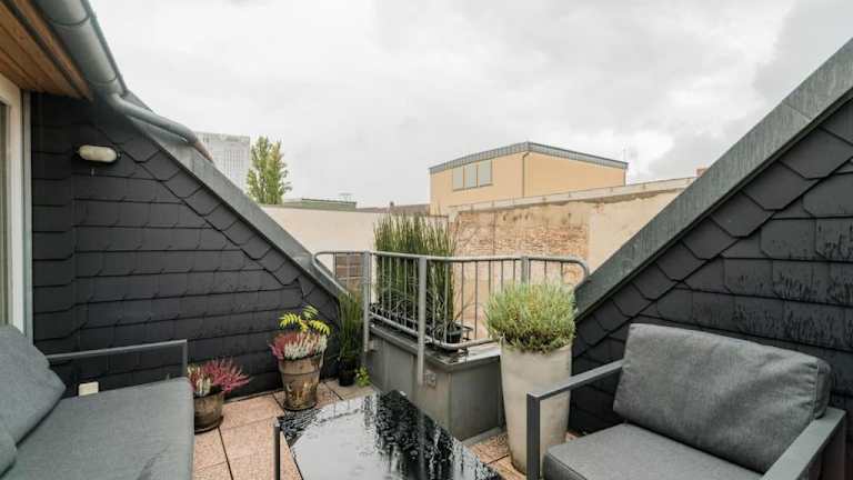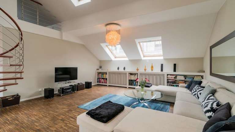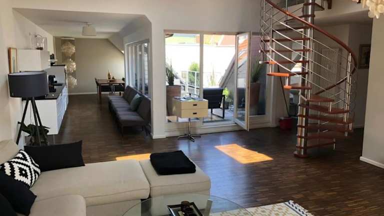 Die ruhige Dachwohnung ist eine moderne Ferienwohnung mit Zugang zu einer Terrasse. Es handelt sich um eine Nichtraucherunterkunft, in der sowohl öffentliche als auch private Bereiche rauchfrei sind. Die Ferienwohnung wird von einem privaten Gastgeber geführt. Junggesellen- und Junggesellinnenabschiede sowie ähnliche Feiern sind untersagt.