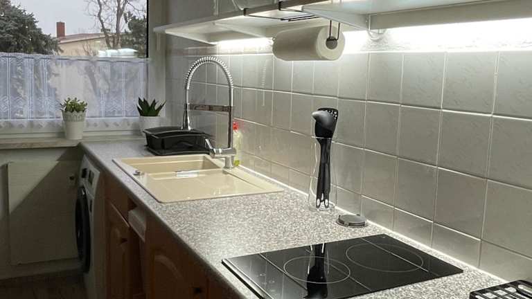 Die Ferienwohnung ist mit 2 Schlafzimmern, einer voll ausgestatteten Küche mit Kühlschrank und Geschirrspüler, sowie einer Waschmaschine ausgestattet. Es gibt ein Badezimmer mit kostenlosen Pflegeprodukten und einem Haartrockner. Die Unterkunft ist eine Nichtraucherunterkunft.