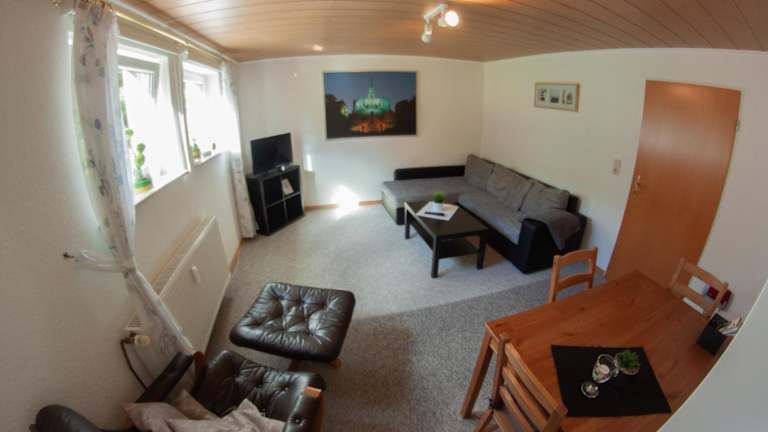 Die Ferienwohnung besteht aus einem Schlafzimmer, einem Wohnzimmer sowie einem Badezimmer mit Dusche und Haartrockner. Die Zimmer sind ausgestattet mit einem Flachbild-TV und kostenlosem Wifi. Handtücher und Bettwäsche werden zur Verfügung gestellt.
