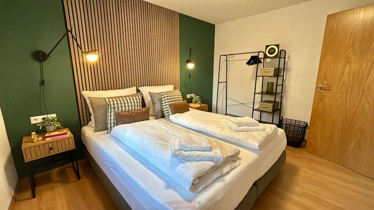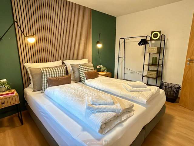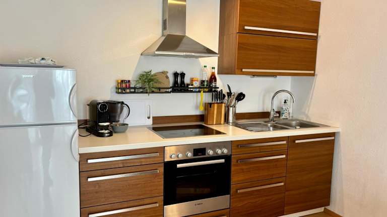 Die Unterkunft besteht aus 2 Schlafzimmern und einer voll ausgestatteten Küche, was Bequemlichkeit für längere Aufenthalte bietet.