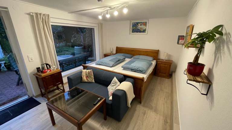 Die ruhige, gemütliche 1-Zimmer Gartenwohnung bietet Übernachtungsmöglichkeiten für bis zu 2 Erwachsene. Sie überzeugt durch ihren heimeligen Charakter und eine entspannende Atmosphäre. Die Unterkunft ist ideal für Paare, die eine ruhige Zeit verbringen möchten.