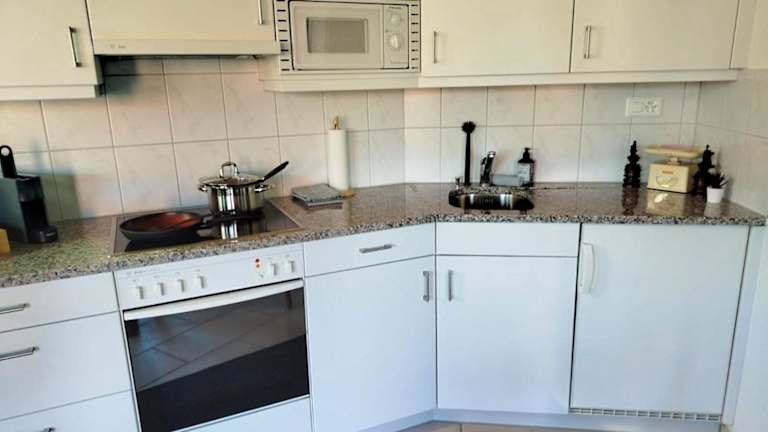 Die Ferienwohnung beinhaltet 1 Schlafzimmer und 1 Badezimmer. Zur Ausstattung gehören Bettwäsche, Handtücher, ein Flachbild-TV, ein Essbereich sowie eine voll ausgestattete Küche. Auf der Terrasse kann der Blick auf die Berge genossen werden.
