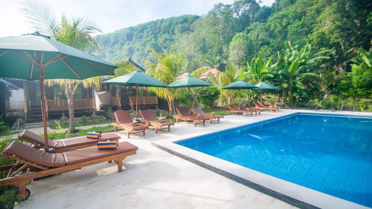 Das Ruji Ananta Cottage bietet eine Vielzahl von Freizeitaktivitäten. Entspannen Sie am ganzjährig geöffneten Außenpool oder genießen Sie die Sonne auf der Terrasse. Wenn Sie die Umgebung erkunden möchten, steht Ihnen ein Fahrradverleih zur Verfügung. Alternativ können Sie auch ein Auto mieten und die Insel auf eigene Faust erkunden. In der Nähe des Cottages finden Sie beliebte Sehenswürdigkeiten wie die Strände Crystal Bay, Pandan und Puyung, die definitiv einen Besuch wert sind.