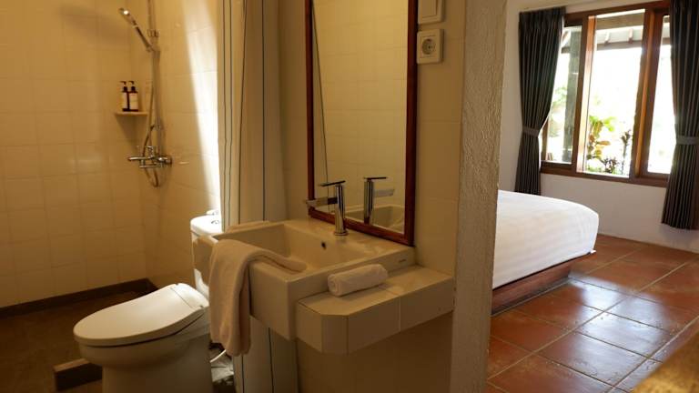 Nur 30 km von Watu Dodol entfernt in Licin gelegen, bietet die Unterkunft eine ruhige Umgebung mit einem Garten und einer Terrasse.