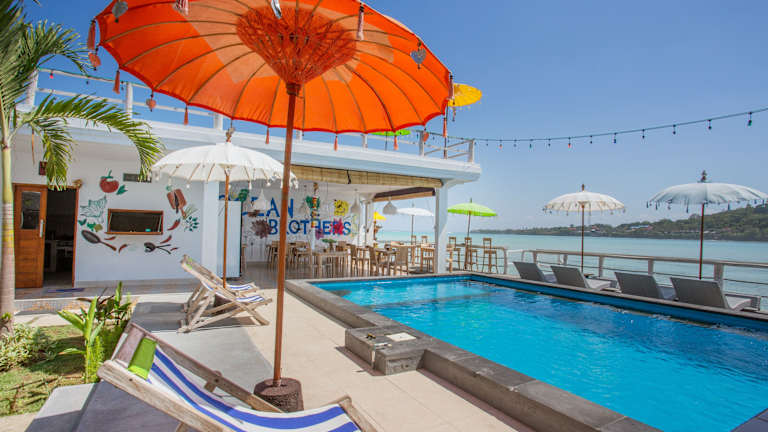 Rumah Marta Ceningan Island ist eine gemütliche Unterkunft, die Übernachtungsmöglichkeiten in einem heimeligen Ambiente bietet. Zur Ausstattung gehören ein schöner Garten, ein Aussenpool sowie ein eigener Strandbereich. Die Unterkunft bietet zudem eine Bar und ein Restaurant, wo die Gäste Mahlzeiten und Getränke geniessen können. Das Personal an der 24-Stunden-Rezeption steht den Gästen jederzeit mit Tipps zur Umgebung zur Verfügung.