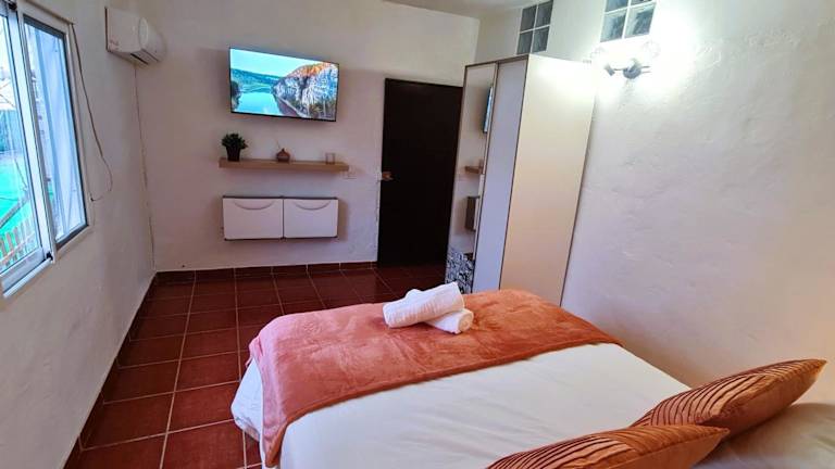 Die Ferienwohnung beinhaltet ein Schlafzimmer und eine gut ausgestattete Küche mit Kühlschrank und Mikrowelle. Sie bietet zudem einen Flachbild-TV, einen Sitzbereich sowie ein Badezimmer mit Bidet. Handtücher und Bettwäsche werden zur Verfügung gestellt. Die Unterkunft ist klimatisiert und verfügt über eine Veranda bzw. ein Patio.