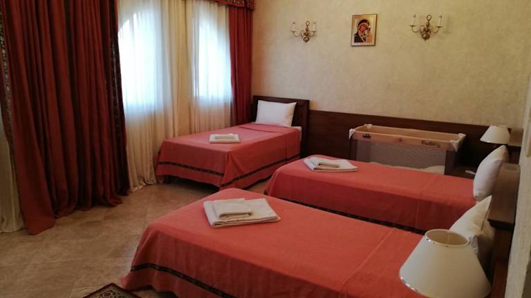Die Russian Pilgrim Residence bietet Übernachtungsmöglichkeiten in einer ruhigen Umgebung mit einem Garten, einer Gemeinschaftslounge und einer Terrasse. Die Unterkunft hat eine rund um die Uhr besetzte Rezeption, Flughafentransfers, einen Zimmerservice und kostenloses Wifi. Zudem stehen den Gästen Konferenz- und Veranstaltungsräume zur Verfügung. Auch eine Sauna und Grillmöglichkeiten sind vorhanden, teilweise gegen zusätzliche Gebühren.
