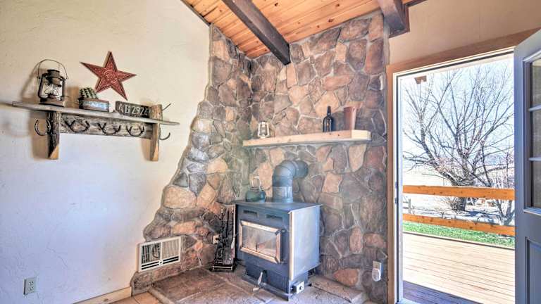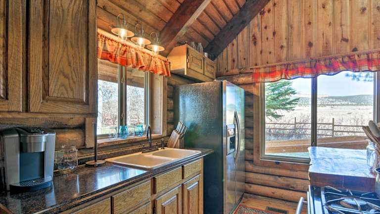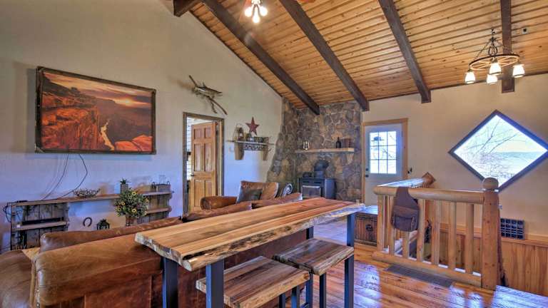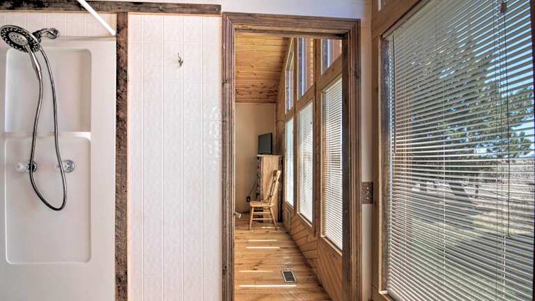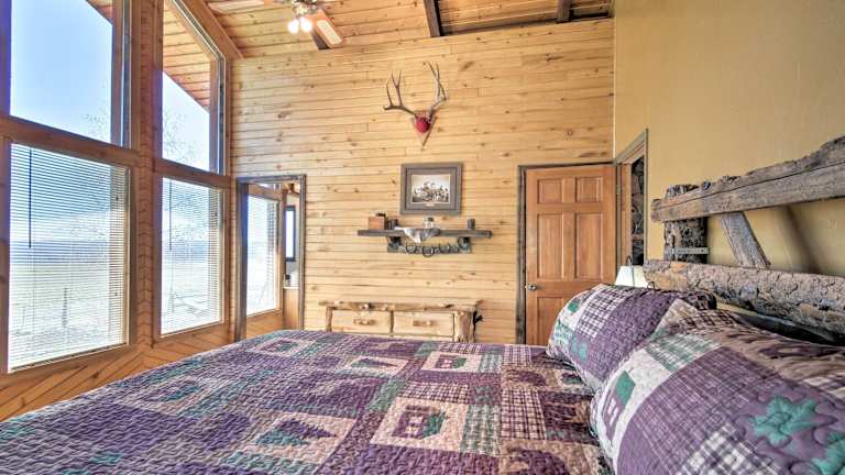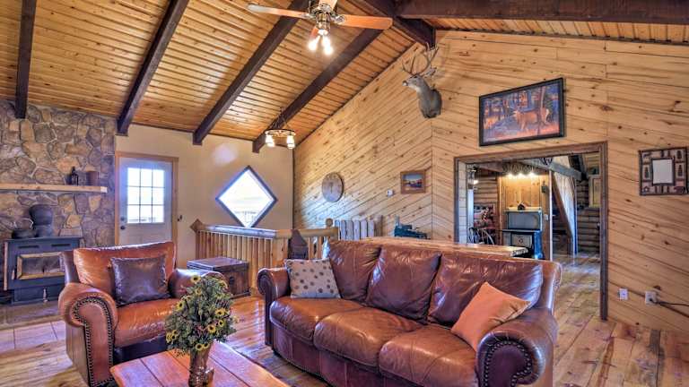 Die Zimmer der Rustic Cabin sind mit Handtüchern und Bettwäsche ausgestattet. Das Ferienhaus bietet ein geräumiges Wohnzimmer, vier Schlafzimmer und drei Badezimmer, sodass genügend Platz für die Gäste vorhanden ist.
