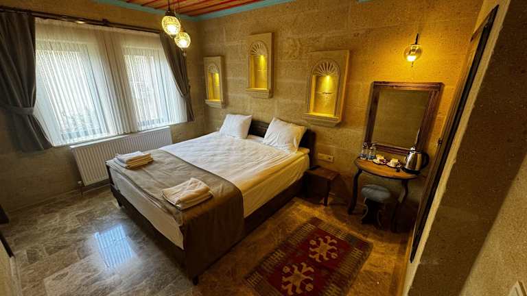 Das Rustic Caves Hotel befindet sich in Göreme, 3,3 km entfernt von Uçhisar Kalesi. In der Umgebung finden sich das Zelve Open Air Museum in 6,5 km und das Nikolos Monastery in 9,2 km Entfernung. Der Flughafen Nevşehir-Kapadokya ist 38 km entfernt.