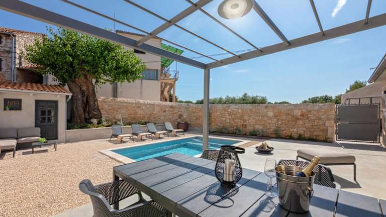 Die Villa Rustic Dvori mit einem eigenen Pool und herrlichem Garten bietet Übernachtungsmöglichkeiten für Gäste, die eine heimelige Unterkunft suchen. Die Villa verfügt über eine Terrasse, die zum Verweilen einlädt, und einen kostenlosen Privatparkplatz für Gäste, die mit dem Auto anreisen. Zudem steht kostenloses Wifi zur Verfügung.