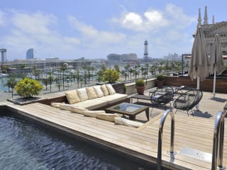 Sonnenterrasse und Schwimmbad im sechsten Stock , mit Blick auf dem Hafen Ein Spaziergang durch die einzigartigen Strassen und Gassen des Barrio Gótico, über die Ramblas und am Hafen entlang. Besuch der gotischen Kathedrale und des Nachbarviertels Borne. Kultur- und Kunstrouten durch die Stadt. Gaudí-Route. Picasso-Museum und Palau de la Música.